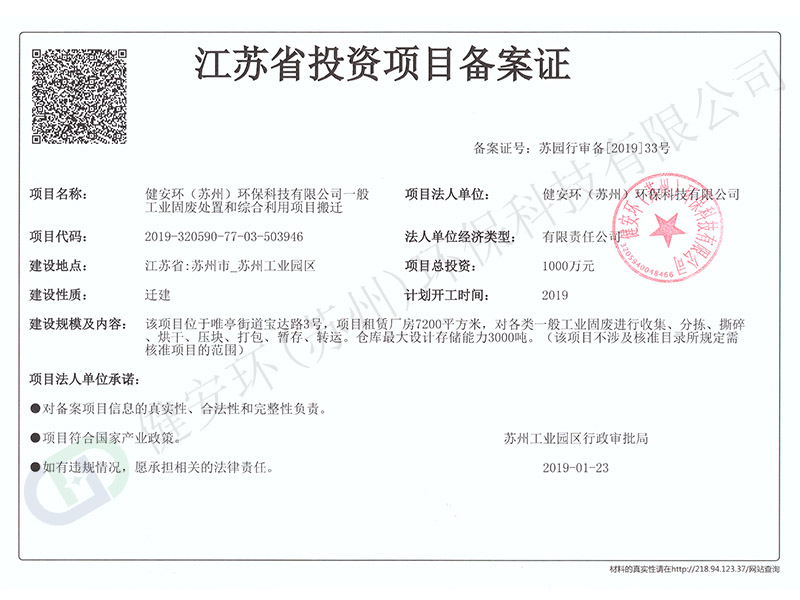 投資項(xiàng)目備案證 新